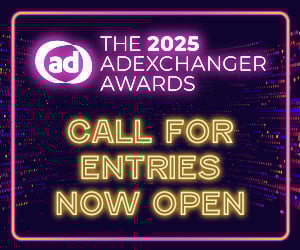 Secure Your SeatThe AdExchanger Awards celebrates excellence in digital marketing and advertising. The 2025 AdExchanger Awards call for entries is now open. Early deadline is 7/11. Final deadline is 7/18.